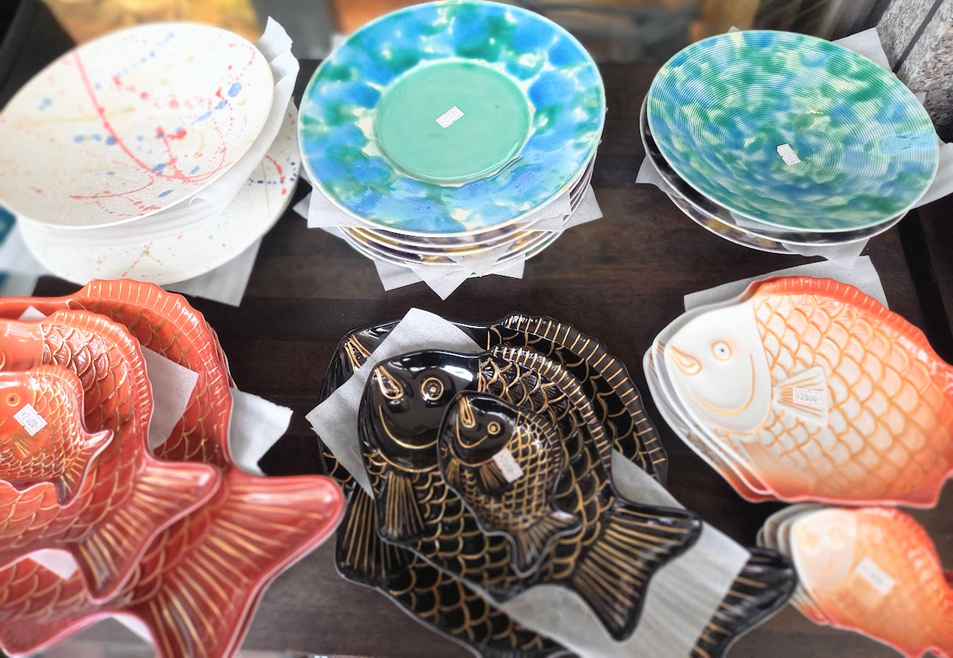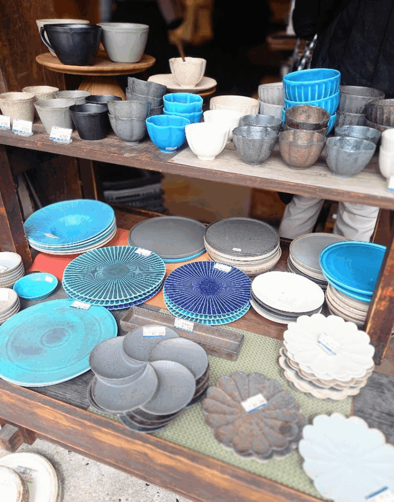 また、家庭でも使いやすいシンプルな白い豆皿や小皿が、100円ショップ並みの価格で大量に販売されるワゴンもあり、思わず足を止めてしまうことになります。