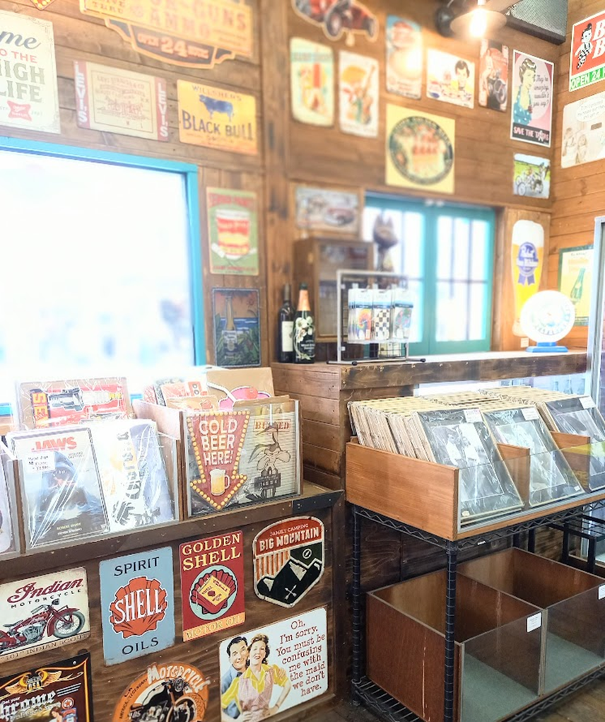 アメリカン雑貨のお店では、ブリキの看板が充実!インテリアにいいですね