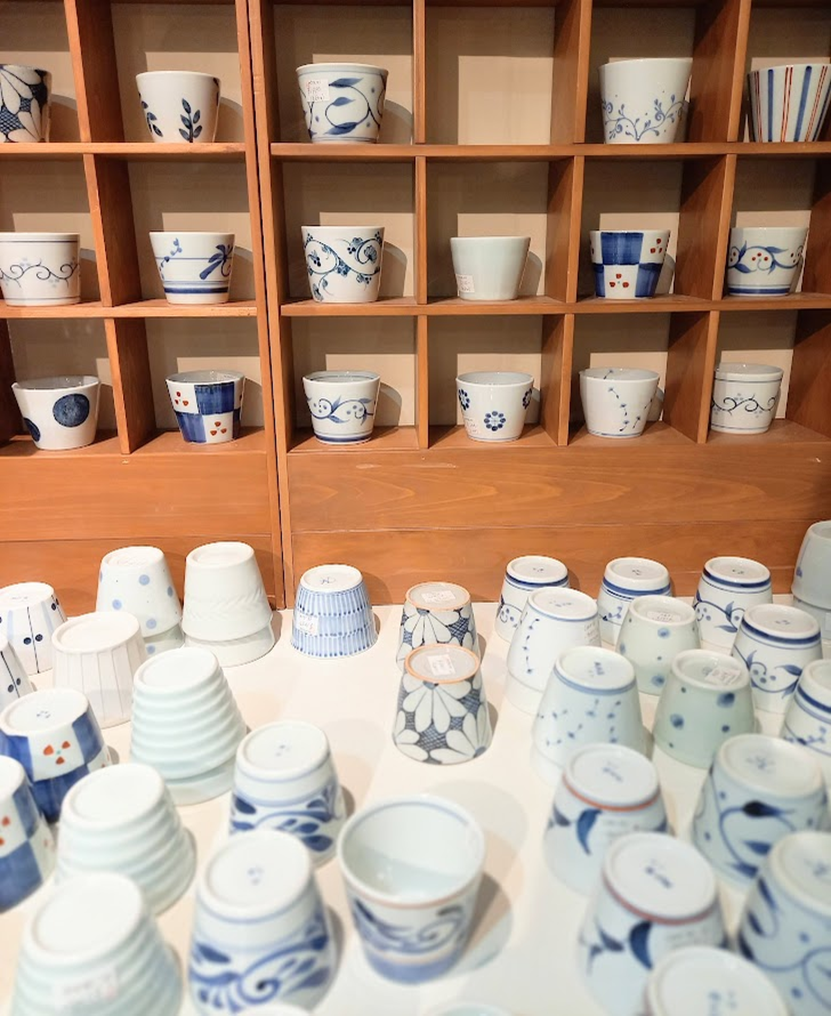 砥部焼らしい力強い「白磁に呉須(藍色)」の伝統的なうつわから、現代の食卓になじむパステルカラーやモダンな文様のものまで、幅広く展示・販売されています。