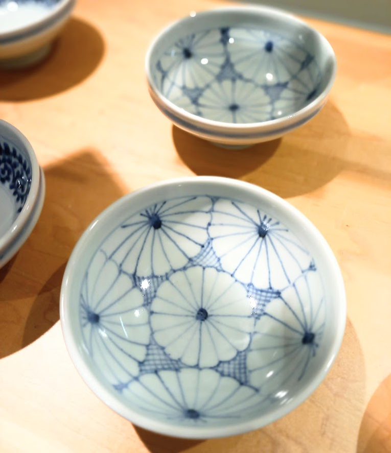 私がひかれたのは、菊が描かれたうつわ。骨董などでもよく見かける柄にもかかわらず、幾何学模様のようにも見えモダンな雰囲気。洋風のメニューにもなじむ懐の大きさがいいですね。