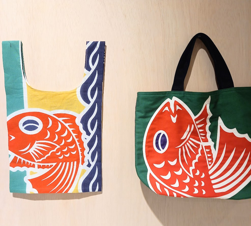 私が商品としていいなと感じたのが、山口県のブースに展示されていた「大漁旗のトートバッグ」。