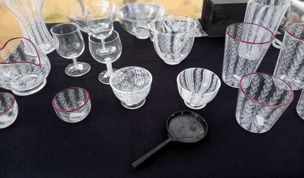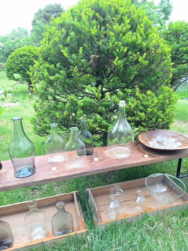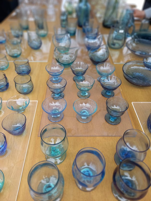自然光の中で見る、さまざまなブルーやグリーンのグラスは手になじみが良く、使いやすいのもいいなと思いました。
