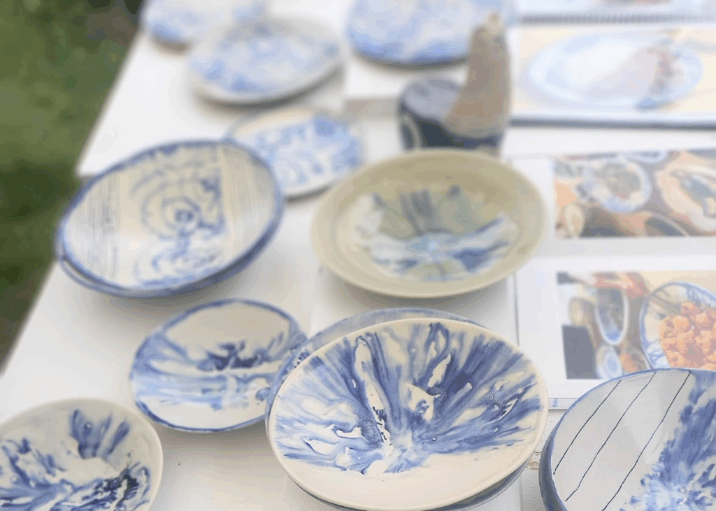 さまざまなテイストのうつわを作っている沼田 佳奈子さん。活動名が「靑と羊」とあるように、独特な青の作品が多いです。