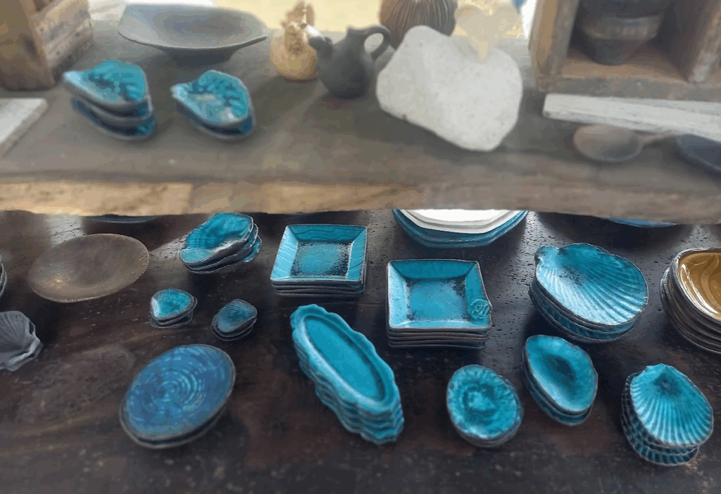 陰影のある美しいターコイズブルーのうつわは、形のバリエーションが豊富、1枚ずつ集めたくなりますね。