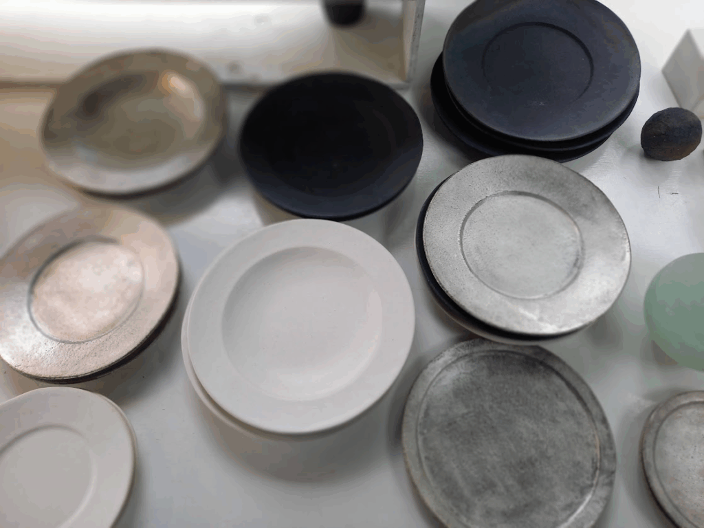 さまざまなイベントで出展されているフルカワゲンゴさん。白、黒、シルバーなどモノトーンが基調でやや無機質にみえるうつわはどれもスタイリッシュ。何を盛り付けても様に様になるので、ふだん使いからおもてなしまで活躍しますよ。