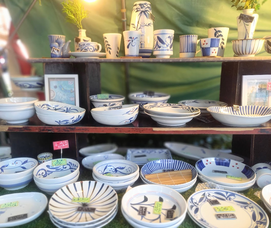 人形町せともの市では、卸売業者の出店が多いため、日本各地の焼き物産地のうつわがそろいます。