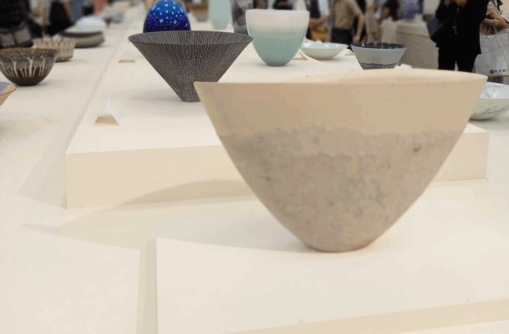 特に、陶芸作品はケースがなく、そのまま台に置かれているので、うつわの内側や表面などを細かく観察できます。