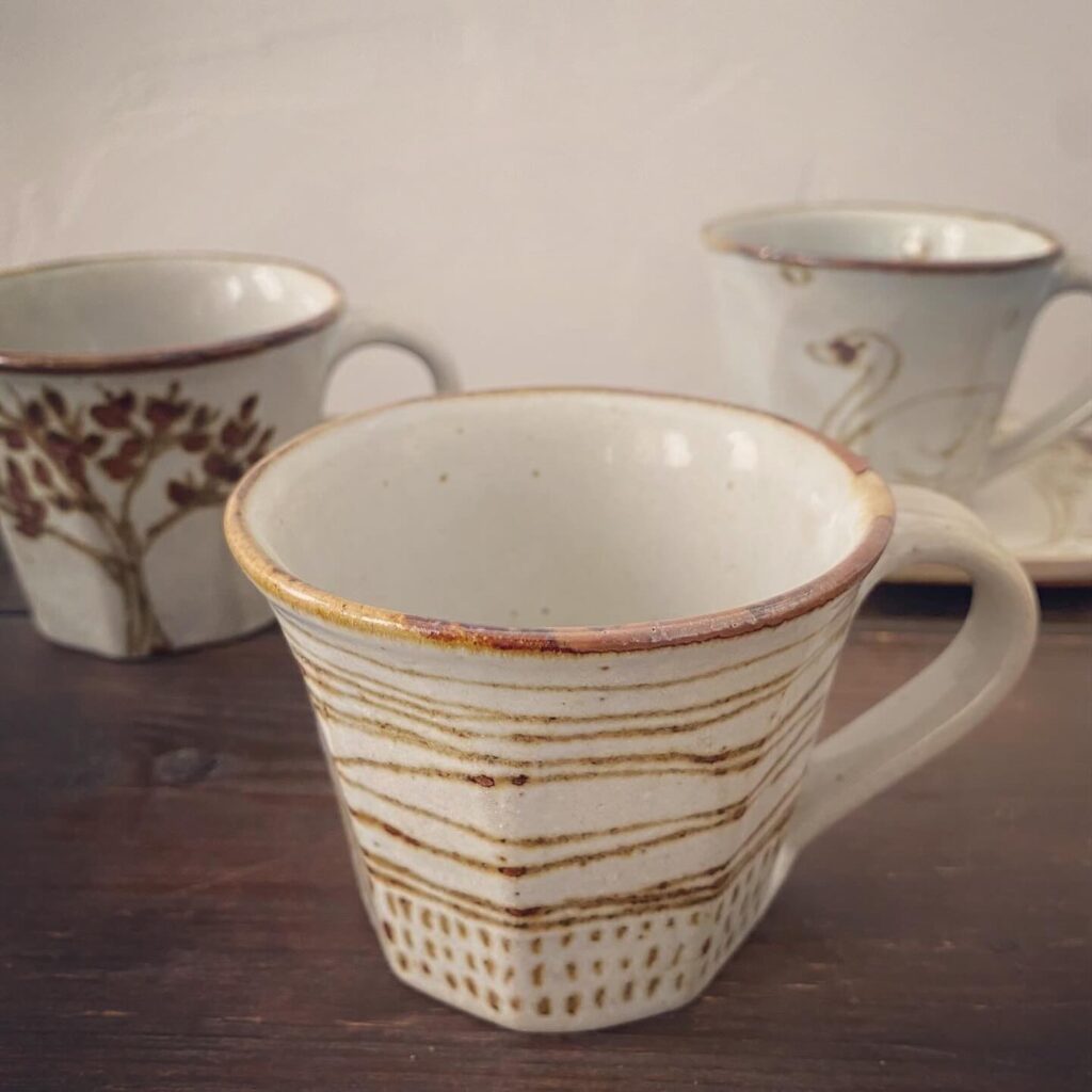 益子焼の「重い」というイメージを払拭するため、カップの側面を削って薄くする面取りという技法を使い、軽くて使いやすい器を追求しています。
