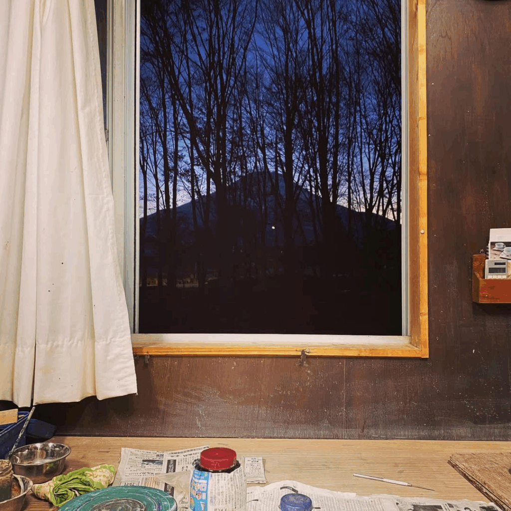 特に、工房の周りの木々が秋に向けてグラデーションのように色を変えていく様子は、創作意欲を強く刺激しているそうです。