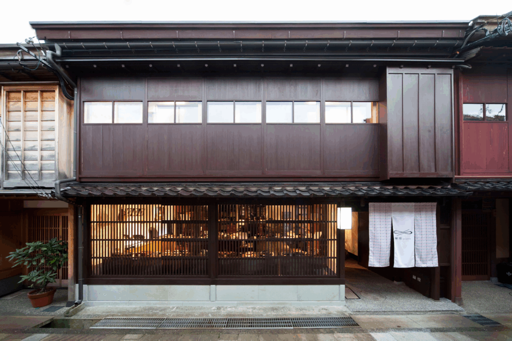 金沢市指定保存建造物に指定された茶屋建築を改装した店内には、加賀友禅、山中漆器、金沢箔、加賀象嵌、大樋焼、加賀繍など、石川県の工芸品が幅広く展示・販売されています。
