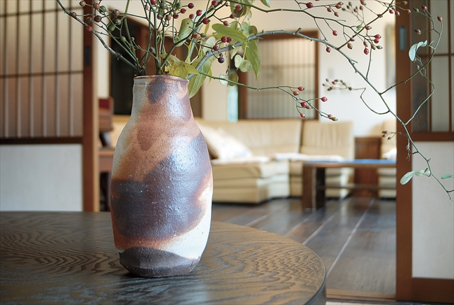一見、信楽焼とは思えないほどエレガントでなめらかなフォルムですが、炎によって生まれる色のグラデーションや、一つとして同じものがない風合いは、まさしく信楽焼ならではの個性。