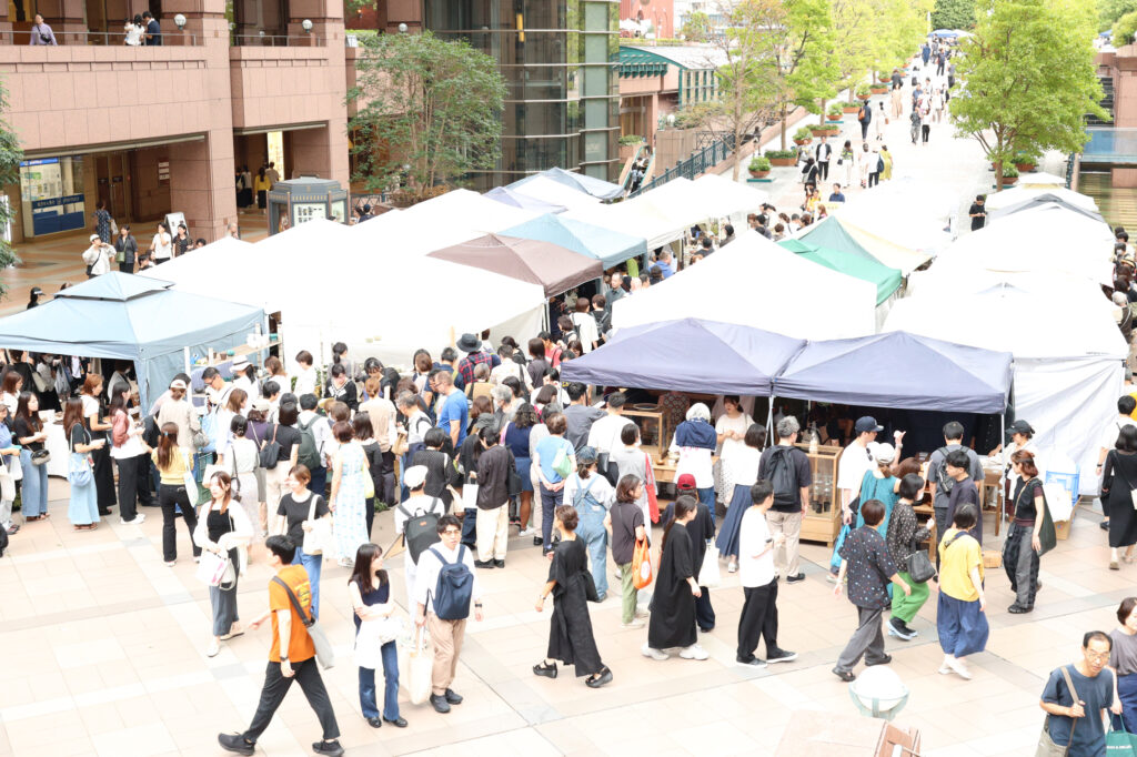 色とりどりのテントが並ぶ中庭は、傘を差した人々で埋め尽くされ、手仕事のぬくもりを求める人々の熱意がひしひしと伝わってきます。
