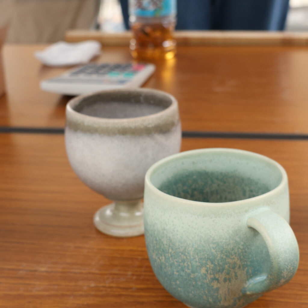 「この釉薬は、地元の土を独自にブレンドしているんですよ」「この形は、手に馴染むように何度も試作を重ねて作ったんです」。