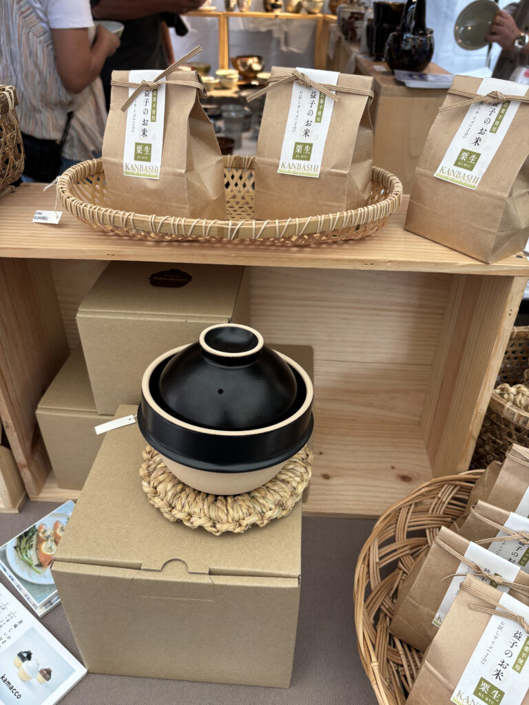 会場には、素朴な陶器だけでなく、竹で編まれたかごやざる、木製の箸やカトラリーといった、手仕事のぬくもりが感じられる品々が並んでいました。